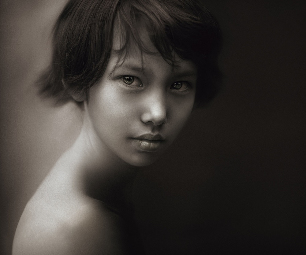 As I mentioned, I often take pictures of children with a difficult fate. For me, one of the most memorable meetings was with the children of the House of Hope - an institution in Almaty Kazakhstan, oddly enough in my opinion. Young mothers who cannot provide for their children may leave them there until they are 7 years old. Then they have to pick them up. Many mothers do not come to visit. I was particularly struck by one of the girls. In her eyes was such a puppy longing ... Thus was born this work - the quintessence of rejection and loneliness.