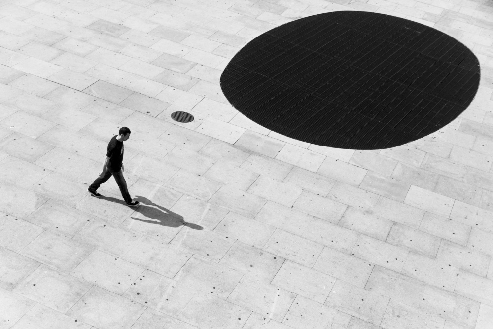 However, just under our feet there are amazing photographic subjects to discover. Perhaps a puddle reflection of the real world on a rainy day, a shadow flow, a pattern in the sidewalk or the opportunity of great geometric compositions from road intersections.