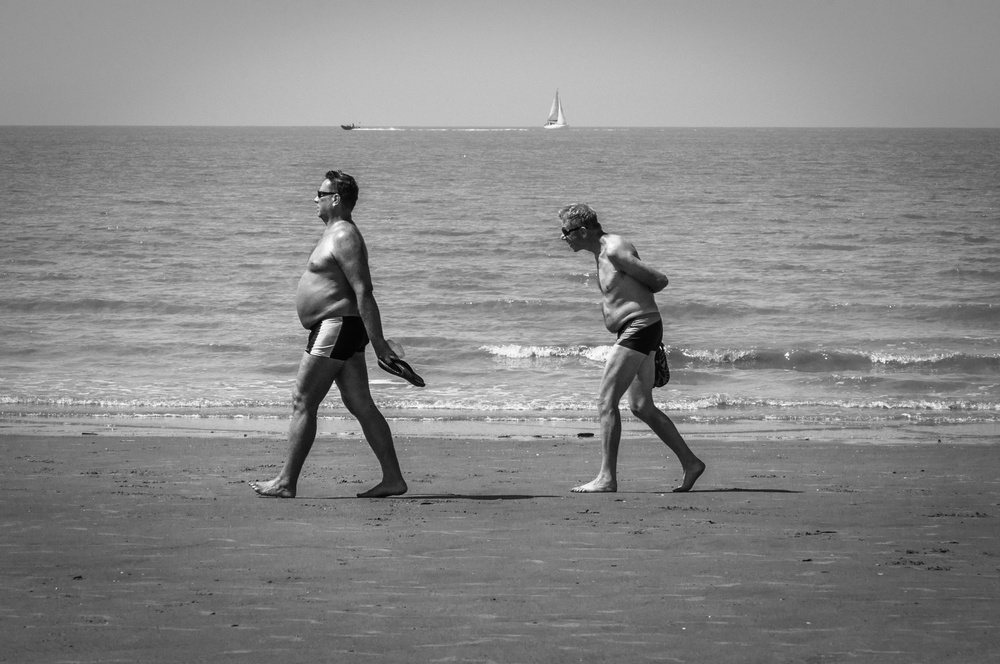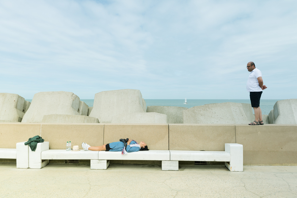 I really like the work of many photographers, and in some of them I see similarities to my style of photographing, especially when they have a kind of humour in their photographs.  Martin Parr is one of my idols in street photography. He has been photographing beach life over many decades and in many countries. One of the reasons why I love his work so much is that his photographs have strong statements about society – and always has a certain viewpoint or critique. Many of his photographs are funny, interesting, or sometimes downright depressing. He interjects his own opinion and thought into his photographs and shows how he sees the world – and challenges us to see the world differently as well. When looking at Martin Parr’s photography, the viewer is often unsure whether to laugh or to cry. He finds the extraordinary in the ordinary. In some of my photos I found an inspiration in him.