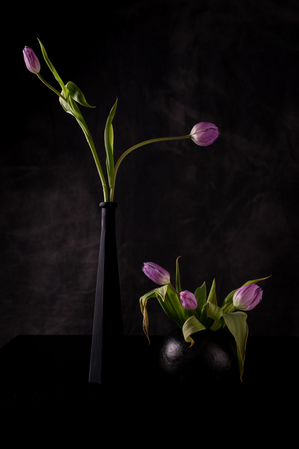 In classical still life scenes, we want to create mood with lighting, be it strobe or continuous. There are a number of ways to do this, but general advice is to start with one key light and build the scene up slowly, creating a blend of light and shadowy areas by adding more lights, reflectors and even flagging areas using dark cards in front of the light to remove harsh lighting.